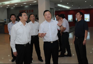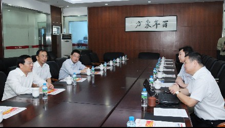 馬正其副局長(左一)、吳道聞副市長(左二)等領導與公司董事長何思模教授(右一)進行交流