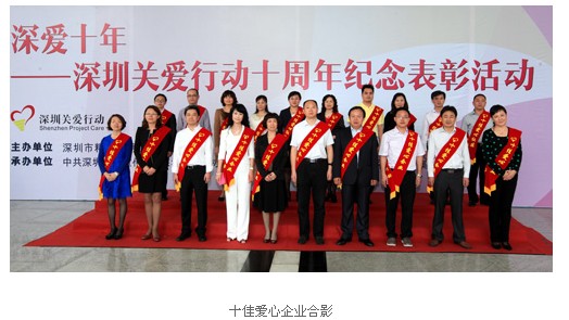 活動回顧:4月28日下午,“深愛十年”深圳關(guān)愛行動十周年紀念表彰活動在深圳廣電大廈拉開帷幕。百萬市民矚目的年度“十佳愛心人物”、“十佳愛心企業(yè)”等名單一一揭曉。中央、省文明辦的相關(guān)領(lǐng)導,深圳市委書記王榮等市有關(guān)領(lǐng)導出席,相關(guān)成員單位以及社會各界愛心人士代表近1000人參加活動。以“關(guān)愛•感恩•回報”為主題的深圳關(guān)愛行動迄今已連續(xù)舉辦十屆,現(xiàn)已經(jīng)成為深圳精神文明建設(shè)的重要品牌。