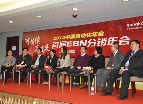 同時,會議邀請李總以及ABB低壓、新時達、步科、百通赫斯曼、研華、魏德米勒渠道負責人一起就2013年對EBN的分銷政策、以及工業電商的發展趨勢、EBN發展前景等內容展開討論,百家爭鳴,為與會的經銷商、渠道商答疑解惑。各家精彩的發言使臺上臺下受益匪淺,掌聲雷動。