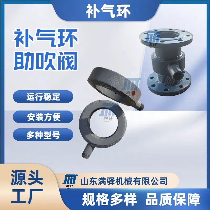 通常為環形結構,可套在輸灰管道外部或內置在管道內部(根據安裝場景選擇)。環體上均勻分布多個補氣孔(或噴嘴),確保補氣氣流沿管道圓周均勻擴散,避免局部氣流紊亂。部分補氣環還配有閥門或流量計,可調節補氣量。