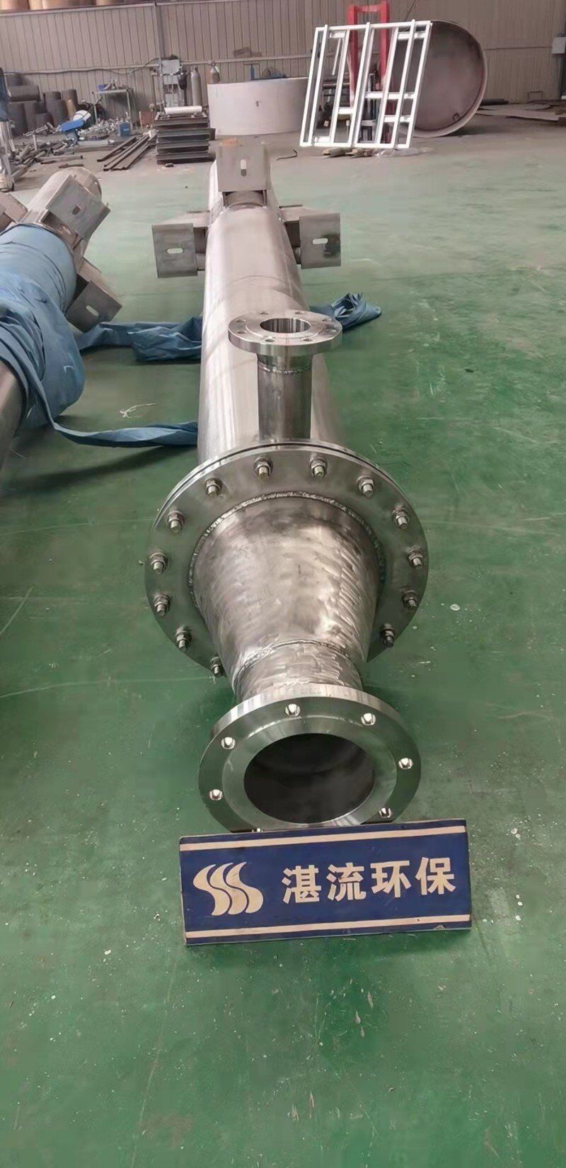 尿素?zé)峤鉅t 一種SCR脫硝防結(jié)晶型尿素?zé)峤庵瓢毖b置 上設(shè)置有雙流體霧化噴槍,雙流體霧化噴槍的尿素溶液進(jìn)口端與計(jì)一種SCR脫硝防結(jié)晶型尿素?zé)峤庵瓢毖b置尿素溶液出口端相連,雙流體霧化噴槍的壓縮空氣進(jìn)口端與計(jì)量和分配裝置的壓縮空氣出口端相連,計(jì)量和分配裝置的信號(hào)端與控制器的信號(hào)端相連;熱解爐的混合氣體出口端與SCR反應(yīng)器相連;熱解爐包括筒形爐體及與筒形爐體相連的錐形爐體;在筒形爐體與錐形爐體相連的圓周平面內(nèi)設(shè)置有熱量均分板,熱量均分板呈旋渦狀,且安裝在筒形爐體的熱風(fēng)進(jìn)口端。通過(guò)熱量均分板對(duì)進(jìn)入熱解爐的熱量均分,防止造成尿素?zé)峤鉅t出現(xiàn)結(jié)晶。 一種SCR脫硝防結(jié)晶型尿素?zé)峤庵瓢毖b置 上設(shè)置有雙流體霧化噴槍,雙流體霧化噴槍的尿素溶液進(jìn)口端與計(jì)一種SCR脫硝防結(jié)晶型尿素?zé)峤庵瓢毖b置尿素溶液出口端相連,雙流體霧化噴槍的壓縮空氣進(jìn)口端與計(jì)量和分配裝置的壓縮空氣出口端相連,計(jì)量和分配裝置的信號(hào)端與控制器的信號(hào)端相連;熱解爐的混合氣體出口端與SCR反應(yīng)器相連;熱解爐包括筒形爐體及與筒形爐體相連的錐形爐體;在筒形爐體與錐形爐體相連的圓周平面內(nèi)設(shè)置有熱量均分板,熱量均分板呈旋渦狀,且安裝在筒形爐體的熱風(fēng)進(jìn)口端。通過(guò)熱量均分板對(duì)進(jìn)入熱解爐的熱量均分 直徑:φ916進(jìn)出口尺寸:SO 300-6 RF含霧化噴槍尿素噴量:40~100L/H壓縮空氣:0.6~0.8MPa氣水接口:NPT 1/2"外螺紋
