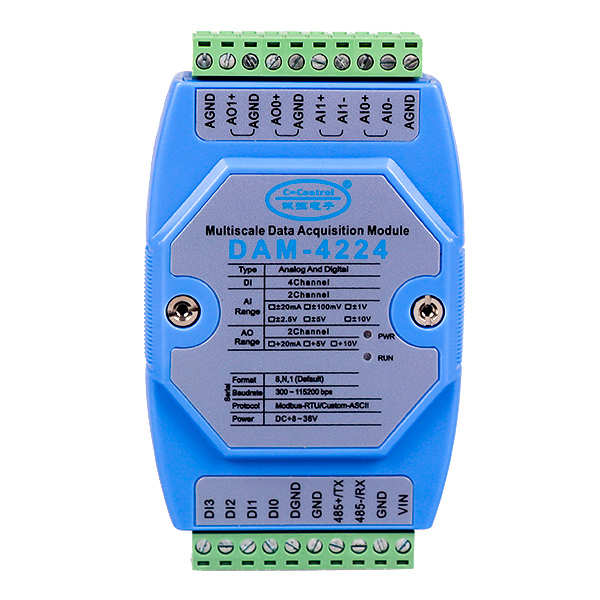 DAM-4224 輸入輸出模塊簡(jiǎn)介: DAM-4224是集模擬量輸入、模擬量輸出與數(shù)字量輸入于一體的混合型數(shù)據(jù)采集器,可采集2路單端模擬信號(hào)與4路數(shù)字量信號(hào),并可以輸出2路模擬量信號(hào);模塊采用高性能24位AD芯片,測(cè)量精度±0.05%。適用于采集工業(yè)現(xiàn)場(chǎng)的各種電壓/電流信號(hào)及數(shù)字量/開關(guān)量信號(hào),現(xiàn)場(chǎng)電壓/電流信號(hào)控制系統(tǒng)。采用先進(jìn)的磁隔離技術(shù),有效保障數(shù)據(jù)采集的速度、可靠及安全。 參數(shù): CPU:低功耗微處理器 系統(tǒng):嵌入式實(shí)時(shí)操作系統(tǒng) 隔離耐壓:DC 2500V ESD保護(hù):±15KV 寬供電范圍:DC +8~+36V 功耗:小于1W 工作溫度:-40℃~+80℃ 工業(yè)級(jí)V0級(jí)防火塑料外殼保障產(chǎn)品應(yīng)用各類環(huán)境安全 安裝方式:標(biāo)準(zhǔn)DIN35導(dǎo)軌安裝 數(shù)字/開關(guān)量輸入 數(shù)字/開關(guān)量輸入通道數(shù):4路 數(shù)字量低電平范圍:DC -28V~1.5V 數(shù)字量高電平范圍:DC +2.5V~28V 開關(guān)量輸入短接阻值:≤200Ω 數(shù)字/開關(guān)量輸入頻率:≤10Hz 模擬量輸入 輸入通道數(shù):2路差分輸入 輸入范圍:±20mA,±100mV,±1V,±2.5V,±5V,±10V 轉(zhuǎn)換速率:20次/秒(全通道) AD轉(zhuǎn)換分辨率:24位 測(cè)量精度:±0.05%(典型值) 輸入端過壓保護(hù),過流保護(hù),并有低通濾波 共模抑制(CMR): 120 dB(1kΩ Source Imbalance @ 50/60 Hz) 常模抑制(NMR): 60 dB (1kΩ Source Imbalance @ 50/60 Hz) 模擬量輸出 輸出通道數(shù):2路 DA轉(zhuǎn)換分辨率:12位 DA輸出精度:±0.2%(典型值) 輸出范圍:+20mA,+5V,+10V 響應(yīng)時(shí)間:<20mS 電壓型輸出電流:≤10mA(典型值) 電流型輸出負(fù)載能力:外部阻抗 RS232連接 DAM系統(tǒng)模塊RS232接口為標(biāo)準(zhǔn)RS232接口,符合相關(guān)規(guī)范,可以直接與電腦或其它標(biāo)準(zhǔn)RS232接口連接,其連接方式為交叉連接法,即模塊TX與電腦RS232的RX連接,模塊RX與電腦RS232的TX連接,模塊GND與電腦RS232的SGND連接。 通信地址 DAM-4224模塊通信地址范圍為01~FF(1~255),模塊地址出廠設(shè)置為01;模塊通信地址可以由用戶根據(jù)現(xiàn)場(chǎng)需要通過命令修改,DAM-422X模塊RS232/RS485支持波特率:300bps、600bps、1200bps、2400bps、4800bps、9600bps、19200bps、38400bps、57600bps、115200bps;模塊通信速率可以由用戶根據(jù)現(xiàn)場(chǎng)需要通過命令修改,具體方法參見相應(yīng)命令。 ASCII通信協(xié)議 DAM模塊支持Custom-ASCII協(xié)議(自定義的ASCII協(xié)議),用戶可以通過簡(jiǎn)單的ASCII命令方便的讀取測(cè)量數(shù)據(jù)和配置模塊參數(shù),比如地址(0x01~0xFF)、波特率(300bps、600bps、1200bps、2400bps、4800bps、9600bps、19200bps、38400bps、57600bps、115200bps)、校驗(yàn)和狀態(tài)、開啟或關(guān)閉通道等。在條件允許的情況下,用戶還可以通過ASCII命令對(duì)模塊進(jìn)行現(xiàn)場(chǎng)校準(zhǔn)。其指令集兼容于ADAM模塊。 選型表: 溫度采集模塊 | AIAO輸入輸出模塊 | 開關(guān)量輸入輸出模塊 | AI模擬量輸入模塊 | AO模擬量輸出模塊 | 30系列 | 40系列 | 50系列 | 60系列 | 70系列 | 80系列 | DA系列 | DAM-3086 | DAM-4220 | DAM-5161 | DAM-6010 | DAM-7011 | DAM-8021 | DAM-DA | DAM-3088 | DAM-4224 | DAM-5016 | DAM-6020 | DAM-7021 | DAM-8041 | DAM-DA04 | DAM-3063 |