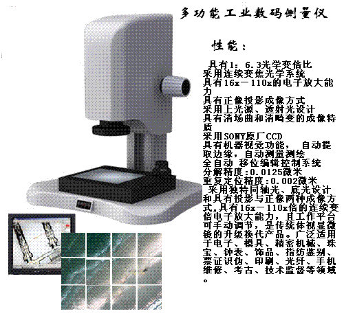 視覺測量  視覺檢測  視覺定位  視覺分析 集合了數(shù)字科技成果與計(jì)算機(jī)屏幕測量技術(shù)的數(shù)碼投影測量系統(tǒng),它應(yīng)用了獨(dú)有的雙向同步倍率校正技術(shù)(專利),采用獨(dú)特同軸光、底光、側(cè)光設(shè)計(jì)和具有投影與正像兩種成像方式,測量精度為±2um,分辨率0.001mm.能夠有效的解決了電子產(chǎn)品的誤差和屏幕的局限和滿足各種倍率的要求。產(chǎn)品是針對精密電子產(chǎn)品檢測制造業(yè)日益精湛的加工工藝所帶來的精確需求開發(fā)而成。